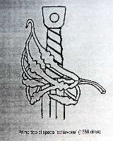 Il primo tipo, il più semplice, si evolve dalla spada detta “a tre vie”. Dai rami del massello che forma la traversa, infatti, si dipartono i tre rami che, uscenti il primo dal ramo di guardia, il secondo dal braccio di guardia e il terzo dall’archetto inferiore, si congiungono al braccio di parata, imitando il particolare disegno da cui la denominazione a tre vie.