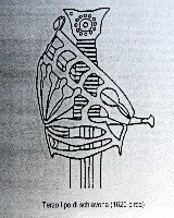 Il secondo tipo lo possiamo datare verso i primi del Seicento ed è caratterizzato da un aumento di rami protettivi. Il terzo tipo, invece, viene realizzato verso la fine del primo quarto del Seicento, con un disegno del tutto nuovo. Dal massello inferiore esce un complesso intreccio di rami intersecati da due rami trasversali uniti da ponticelli e dall’archetto inferiore al superiore si congiungono due ponti. Il quarto e il quinto tipo, settecenteschi, si differenziano dal terzo per l’aumento dei rami trasversali (da due a tre a quattro), e per la controguardia, anch’essa resa più fitta di rami tutti uscenti a mo’ di raggiera dalla parte inferiore del massello, tanto da formare una vera e propria gabbia.