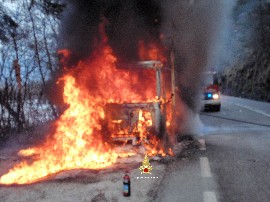 Alle ore 11 di questa mattina i Vigili del Fuoco di Belluno sono intervenuti sulla strada regionale 203 Agordina, al km 10+120, in loc. Candaten per l’incendio di un autocarro.