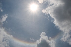 Un arcobaleno concentrico al sole. Questo lo spettacolo che si è presentato agli escursionisti che nel primo pomeriggio di oggi, domenica 3 agosto, si trovavano al rifugio Su’n Paradis, in località Grava, nel Comune di Zoldo Alto, dove si teneva il primo slackline party organizzato dai ragazzi di Superpark.