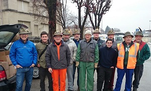 Nella foto, la squadra di alpini in partenza dal piazzale della Stazione