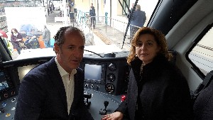 Il nuovo convoglio diesel che dai primi di marzo inizierà a circolare fra Conegliano, Belluno e Padova, aumentando sensibilmente la qualità del servizio, è stato inaugurato dal governatore veneto e dall’assessore alle infrastrutture e trasporti, Elisa De Berti, insieme all’amministratore delegato di Trenitalia, Barbara Morgante.
