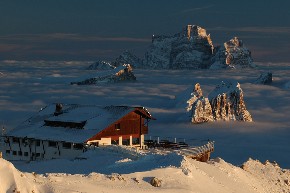In cima al Nuvolau si può godere di uno dei panorami più emozionanti delle Dolomiti. Qui, a 2.575 metri di quota, si trova l’omonimo rifugio: costruito nel 1883 dal Club Alpino austro-tedesco della sezione di Cortina d’Ampezzo, grazie alla generosità di un colonnello tedesco, il barone Richard vom Meerheimb, e oggi gestito dalla famiglia Siorpaes, il Rifugio Nuvolau del CAI Cortina è il più antico delle Dolomiti, rinomato fin dagli albori dell’alpinismo per il panorama mozzafiato. Già Paul Grohmann lo decantava nella sua opera Wanderungen in den Dolomiten del 1877: «Un mare di montagne è davanti a noi, e sarebbe inutile volerle elencare o descrivere. Soltanto la macchina fotografica potrebbe fissare le nostre impressioni». Il grandioso colpo d’occhio che si schiude dalla cima, soprattutto all’alba, ripaga della fatica della salita. (siorpaes@yahoo.com | Tel. +39 0436 867938).