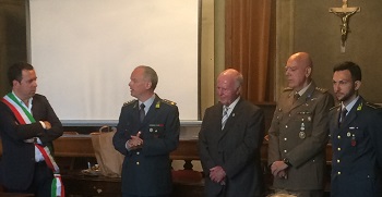 Nella foto, un momento della premiazione, con la presenza di: Ass. Biagio Giannone, Col. Patrizio Milan, Sig. Franco Schnappenberger, Cap. Danilo Fumagalli e Maresciallo Vincenzo Lezza