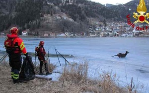 I Vigili del fuoco del distaccamento di Agordo sono intervenuti martedì pomeriggio alle ore 17.30 per soccorrere una cerva imprigionata nelle acque ghiacciate del Lago di Alleghe. Dopo aver recuperato l’animale, i vigili del fuoco hanno provveduto a liberarlo.