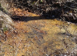 Il sito fa parte di una vasta zona umida, sulla sponda nord orientale del lago di Santa Croce dove, in condizioni di lento ricambio di acqua, l’ossigeno si consuma completamente provocando la proliferazione di vari organismi tra i quali, come in questo caso, i ferrobatteri che formano colonie gelatinose di colorazione rossastra. Questi batteri, infatti, metabolizzano il ferro ossidandolo e producendo idrossido di ferro, dal caratteristico colore rossastro che pigmenta le acque delle zone interessate. Il fenomeno è quindi naturale, come lo è anche la formazione in loco di iridescenze che derivano dalla decomposizione di sostanze organiche presenti in acqua, messa in atto dai metano batteri.