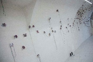 Le opere sono infatti ospitate a Belluno negli spazi dell’ex Pub Carrera, mentre a Cortina sono visitabili dalle 14 alle 19 nella sala incontri del Grand Hotel Savoia: «A Cortina abbiamo allestito otto stendardi, realizzati con la tecnica della xilografia, – spiega Sonia Marinangeli, l’altra anima del duo To/Let – un lavoro molto lungo, manuale e tecnico. Riproducono in grande le forme che abbiamo portato qua a Belluno, e rappresentano i “doppi”: a Palazzo Fulcis, abbiamo portato 500 piccole stampe, attaccate a mano a parete e l’opera viene realizzata ogni volta in maniera diversa, “a sentimento”, attaccando le stampe al muro seguendo ciò che sentiamo».