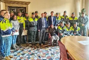 Belluno, 23 dicembre 2019 – La Provincia di Belluno ha consegnato questa mattina un riconoscimento speciale a tutti coloro che si sono adoperati per la gestione dell’ultima emergenza maltempo (a metà novembre). Una pergamena speciale è stata consegnata all’Ana Belluno, che da qualche mese gestisce il magazzino centralizzato della Protezione Civile alla Cal di Limana, grazie a una convenzione stipulata con l’amministrazione provinciale (e che invia i suoi volontari ogni volta che le circostanze lo richiedono). Sono stati insigniti del riconoscimento anche i dipendenti del settore Difesa del Suolo (Pierantonio Zanchetta, Stefania Bassani e Katya Biasuzzi), il responsabile provinciale di Protezione Civile Carlo Zampieri, e la squadra della Polizia Provinciale, capitanata da Oscar Da Rold (in particolare gli agenti Lisa Azzalini, Vittorio Fusinato, Francesco Dell’Osbel, Stefano Fontana, Elio Bottegal, Elvi D’Incà, Sergio Umattino, Mirco Piccin, Mauro De Vallier, Cesare Sacchet, e Romeo Friz).
