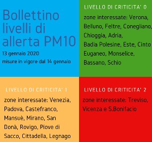 L’Accordo di Bacino Padano prevede il rientro da una criticità superiore al livello verde (zero) nel caso si siano registrate concentrazioni inferiori al limite il giorno precedente a quello del bollettino e solo in presenza di condizioni atmosferiche dispersive. Per questo motivo, fino a giovedì compreso, vengono mantenuti sostanzialmente i livelli di criticità validi sino ad oggi, tranne per Treviso che raggiunge il livello di criticità 2 (rosso). In particolare sono interessate: