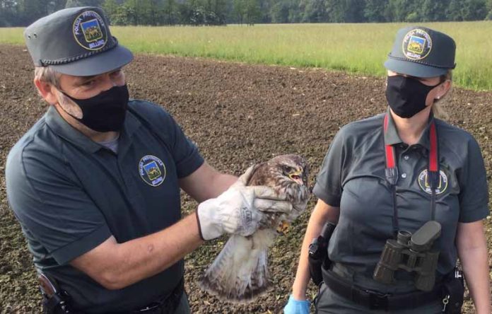 La Polizia Provinciale ha liberato oggi, di buon mattino, uno splendido esemplare di poiana. L’animale era stato prelevato il giorno di Pasquetta, a seguito di una segnalazione da parte di una cittadina, che lo aveva trovato in precarie condizioni di salute nei campi della zona di Salzan (Santa Giustina).
