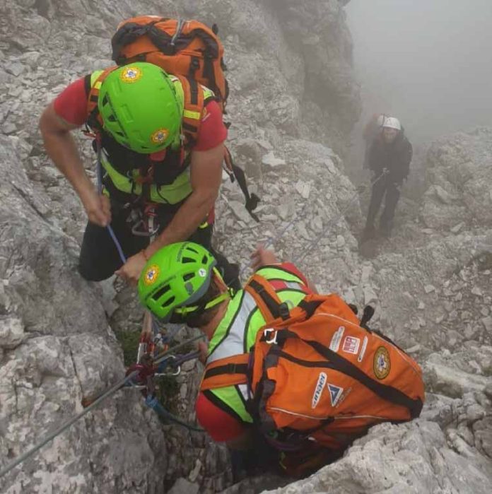 Agordo (BL), 14 – 08 – 20 È stato un intervento difficile come ‘ai vecchi tempi’, quello che dal pomeriggio di ieri fino a notte fonda ha impegnato il Soccorso alpino di Agordo sulla Moiazza. Fondamentali l’affiatamento e la preparazione tecnica della squadra, che ha riportato a valle due ragazzi sfiniti dalla stanchezza lungo 750 metri di dislivello, tra calate in parete e ripidi sentieri resi ancora più scivolosi dalla pioggia. Di certo non lo dimenticheranno i due ragazzi inglesi, di 30 e 27 anni, che ieri avevano lanciato l’allarme attorno alle 17. I due, uno alla prima esperienza escluse camminate sui sentieri, erano partiti passate le 3 di notte dal Rifugio Tomè, sul Passo Duran. Un’oretta abbondante dopo avevano attaccato la Ferrata Costantini. Erano saliti sulla Pala del Belia e di seguito alla Cresta delle Masenade e da lì, probabilmente già stanchi, avevano deciso di rientrare dell’itinerario appena fatto. Durante la discesa però, sopra la Cattedrale hanno sbagliato traccia e preso la vecchia via normale che, se non conosci bene il percorso, ti porta sopra salti di roccia. Capito che da quel punto non sarebbero passati, i due sono tornati sui loro passi alla Cattedrale e, ormai finiti, uno anche con escoriazioni dovute a una scivolata, si sono fermati e hanno chiesto aiuto. Dalla Centrale operativa del 118 non è stato possibile ricevere notizie certe sulla loro posizione. Il cellulare non prendeva e, tramite messaggi, erano riusciti a risalire a due coordinate differenti, la prima sulla cattedrale (dove effettivamente erano), la seconda verso il Bivacco Grisetti. L’elicottero del Suem di Pieve di Cadore, subito decollato, ha sorvolato la Moiazza, ma le nubi non hanno permesso l’individuazione degli escursionisti. L’eliambulanza è quindi volata a imbarcare due soccorritori in piazzola ad Agordo e un terzo dal Rifugio Carestiato, per poi trasportarli in quota e sbarcarli, entrando dal Van della Moiazza, sulla Forcella delle Masenade. In una seconda rotazione l’elicottero ha portato in quota altri due tecnici. Dato che non vi era certezza di dove fossero, i soccorritori si sono divisi: due verso la cima della Ferrata per non escludere quel tratto, tre giù verso la Cattedrale. Non appena i tre si sono abbassati e hanno iniziato a chiamare, dalle urla ricevute in risposta li hanno trovati, poco sotto, a 2.590 metri di quota. Riunitisi al resto della squadra, sono quindi iniziate le operazioni per attrezzare le calate, una quindicina lungo la parete verticale, fino alla sommità della Pala del Belia, a 2.300 metri circa di altitudine. Calato il buio e con i due escursionisti stremati, in contatto costante con l’elicottero di Trento emergenza abilitato per il volo notturno, si è tentato un recupero con l’eliambulanza, purtroppo vanificato dalla nebbia persistente. Alle 23 il gruppo è stato investito dal temporale e, abbandonato il materiale di metallo per il rischio di fulmini, i sette si sono spostati di 50 metri e riparati sotto la roccia. Smessa la pioggia, hanno quindi ripreso a scendere per la via normale che passa nel canalone tra la Pala del Belia e la Pala del Bo, sul cui tratto terminale si era formata una cascata di acqua. I tecnici hanno dovuto predisporre altri tre ancoraggi su roccia per superare alcuni salti, sono risaliti sulla Pala del Bo – raggiunti da altri due soccorritori in supporto alle operazioni – per poi prendere il sentiero e arrivare alle 2 al Rifugio Carestiato, a quota 1.834, dove un’altra squadra di quattro persone era pronta a partire. I due escursionisti sono poi scesi con i soccorritori in rientro fino al Passo Duran.