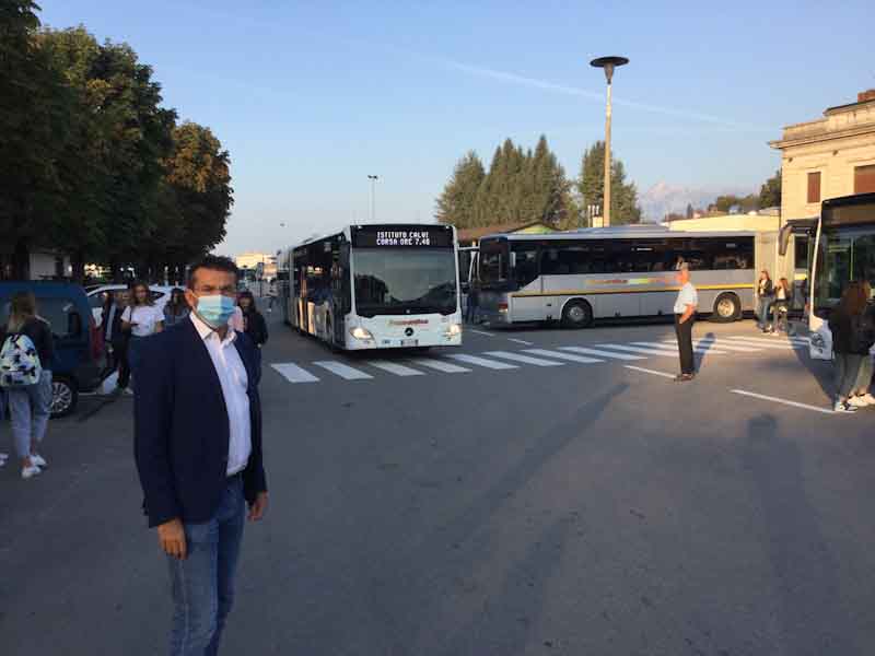 «Ho visto sostanzialmente un buon senso di responsabilità da parte dei ragazzi» dice il presidente della Provincia Roberto Padrin, che questa mattina ha voluto fare un passaggio nel piazzale della stazione, prima di portare il saluto istituzionale in una delle scuole superiori, il liceo Galilei-Tiziano. «Questo atteggiamento collaborativo dovrà contraddistinguere gli utenti dei mezzi pubblici anche nei prossimi giorni e nei prossimi mesi, fino a quando lo richiederanno le norme anti-Covid. Quindi, mascherina sempre indossata sui bus e sui pullman, e rispetto del distanziamento alla fermata e in stazione. È ovvio che la responsabilità individuale di ciascun viaggiatore resta un punto fondamentale per la completa attuazione di tutte le misure igieniche e di comportamento. Ma questo discorso vale per tutti gli ambiti della nostra società. L’autobus è un luogo pubblico, come le strade, le scuole… il passeggero non può essere un semplice spettatore. Cerchiamo di agevolare il lavoro degli autisti e di chi opera sui mezzi».