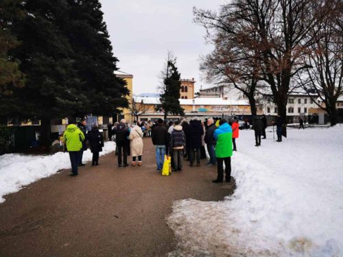 Belluno, 24 dicembre 2021 – Ventunesima settimana e ventiduesimo appuntamento a Belluno con il fronte del dissenso, oramai stabilizzato in poco meno di cento persone. La manifestazione di oggi pomeriggio al Parco “Città di Bologna” avrebbe dovuto ospitare per la celebrazione della messa don Floriano Pellegrini, il parroco indipendentista di Zoldo oramai noto per le sue posizioni fortemente critiche nei confronti della campagna vaccinale. Ma lo stesso don Floriano Pellegrini ha fatto sapere nei giorni scorsi attraverso i social, di aver dovuto rinunciare alla celebrazione a seguito dell’intervento della Curia.