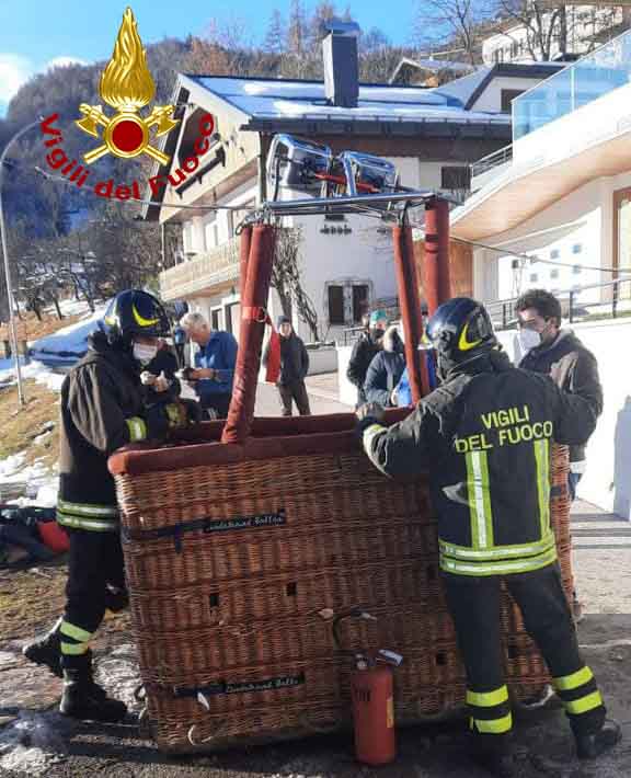 La mongolfiera con 4 persone a bordo di origini danesi era partita da Innsbruck e per cause tecniche ha perso quota, ha prima sfiorato il tetto di un garage tranciando dei fili elettrici per atterrare duramente nel centro della via. I pompieri arrivati dal locale distaccamento volontario di Zoldo Alto e da Belluno, hanno messo in sicurezza le bombole, mentre la donna ferita è stata assistita dal personale del SUEM ed elitrasportata in ospedale. Medicati sul posto le altre tre persone. Le operazioni di soccorso dei vigili del fuoco sono terminate dopo circa due ore.