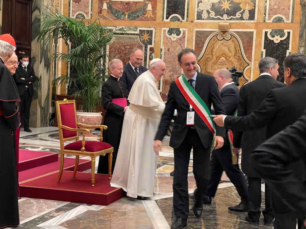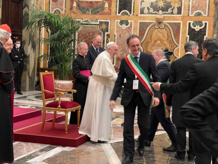 Roma, 5 febbraio 2022 – Sono stati oltre 120 i sindaci, consiglieri e rappresentanti regionali e nazionali dell’Associazione Nazionale Comuni Italiani ricevuti oggi in udienza a Roma da Papa Francesco; tra i presenti, anche il sindaco di Belluno Jacopo Massaro, delegato nazionale dell’associazione con deleghe alla pubblica amministrazione, personale e relazioni sindacali, uno dei tre rappresentanti veneti insieme ai colleghi primi cittadini di Treviso e di Vicenza.