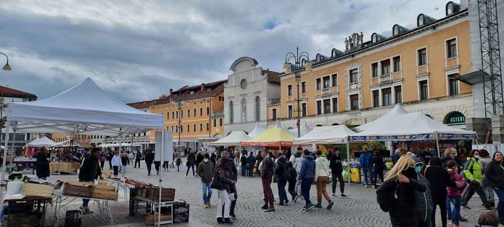 Belluno, 3 aprile 2022 – Neve fresca sulle montagne della Valbelluna e aria gelida non hanno fermato la Sagra dei fisciot di oggi in centro Belluno. Riprende fiato quest’anno, dopo le strette limitazioni anticovid, la tradizionale fiera bellunese con la collaudata formula delle bancarelle, oltre alla rassegna di piatti ‘da strada’ Street Food, provenienti da tutta Italia. Partita un po’ sottotono nella mattinata la gente è arrivata in centro nelle prime ore del pomeriggio, grazie anche alla clemenza del tempo che ha regalato qualche insperato raggio di sole. Non c’era sicuramente l’affollamento che caratterizzava questa manifestazione prima del 2020, ma il centro sta lentamente recuperando il suo pubblico, desideroso di tornare a partecipare ad eventi e attrazioni in città. Forze dell’ordine, alpini in congedo dell’Ana e servizio sanitario, hanno come sempre garantito la sicurezza della manifestazione.