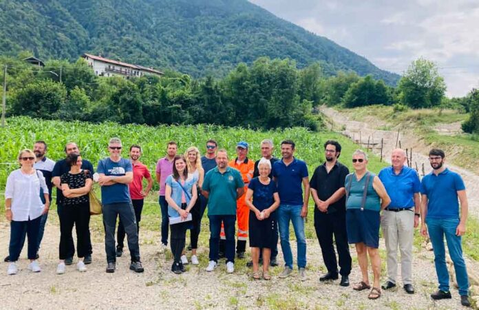 Feltre, 29 giugno 2022 – Taglio del nastro oggi, a Villaga, per il complesso di interventi di messa in sicurezza dell’abitato messo in campo dalla Provincia di Belluno. Si tratta del primo stralcio, dal valore di 1 milione di euro, che ha visto la realizzazione di un canale di scarico che convoglia le acque meteoriche provenienti dal versante del Monte Tomatico, impedendo che inneschino colate di fango fino a invadere la frazione feltrina.