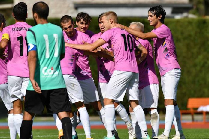 A TAVOLETTA – I padroni di casa iniziano a tavoletta. E creano almeno tre pericoli, in meno di un quarto d’ora: con De Paoli, che ruba palla e calcia alto, una mischia furibonda davanti alla linea di porta. E con Svidercoschi, sul cui tiro si oppone l’estremo difensore Fabris. Ma il gol è nell’aria e prende forma a ridosso della mezz’ora, quando Artioli imbecca De Paoli, che non perdona: 1-0. E il raddoppio segue a ruota, grazie al sinistro telecomandato di Artioli, su invito di Alex Cossalter. Il vantaggio potrebbe essere addirittura al cubo, se solo il guardalinee non sbandierasse un fuorigioco millimetrico di Svidercoschi.