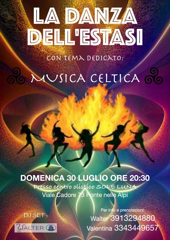 Domenica 30 luglio alle 20:30 al Centro Olistico SoleLuna in viale Cadore 73 a Ponte nelle Alpi, si danzerà sulle note di melodie celtiche e irlandesi.