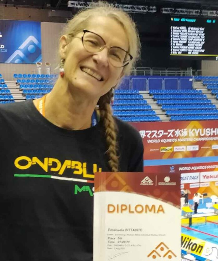 Nelle stesse vasche ove hanno nuotato qualche settimana prima gli atleti delle nazionali assoluti, Emanuela Bittante e Marta Chenet, entrambe della categoria M60 si sono ben distaccate durante la settimana giapponese. Emanuela Bittante ha calato il tris giungendo in tutte e tre le gare a cui ha partecipato tra le prime 10 e conseguendo l’attestato che viene dato a chi arriva dal quarto al decimo posto: 5a nei 400 misti, 7a nei 100 rana e quest’oggi 8a nei 50 rana. Emanuela si conferma atleta di valore non avendo mai mancato ad un appuntamento iridato dal 2000. Marta Chenet ha esordito a livello internazionale con grosse soddisfazioni: 47a nei 200 stile, 105a nei 50 stile e 72a nei 50 rana. Felice per il risultato delle sue atlete l’allenatrice Mara Grelloni, i compagni di squadra masters e tutta la società Ondablu presieduta da Angelo Paganin.