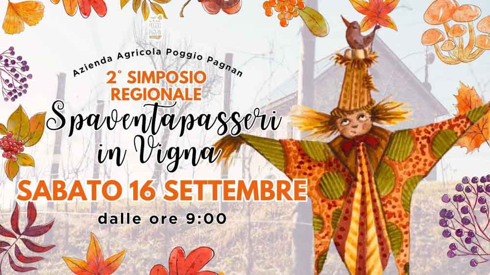 Sabato 16 Settembre 2023 dalle ore 9 e per tutta la giornata l’Azienda agricola Poggio Pagnan di Borgo Valbelluna promuove il 2° SIMPOSIO REGIONALE DI SPAVENTAPASSERI IN VIGNA. L’evento si farà con qualsiasi tempo in quanto sarà allestito un apposito capannone.
