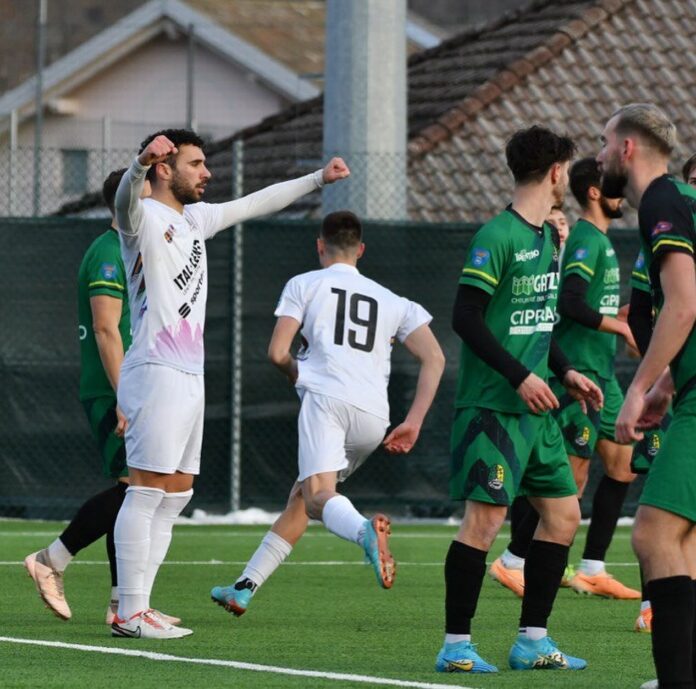 ROSSO – Nella ripresa, il fattaccio: al 14′, Caprioni va giù in area e reclama un penalty. Invano. Ma, quel che è peggio, è che il direttore di gara “capta” una parola di troppo e spedisce il numero 14 sotto la doccia. La reazione dolomitica? È lucida, razionale. E chirurgica, al pari del sinistro al volo di Toniolo, in seguito a un corner: sfera sotto la traversa e l’equilibrio è rotto. Sulle ali dell’entusiasmo, sfiora il bersaglio pure Perez, di tacco e da consumato centravanti. Pericolosissimo lo è anche Marangon, che in contropiede sfiora il raddoppio, mentre nell’altra area una deviazione del neo entrato Gozzo mette i brividi ai dolomitici. I quali capitolano quando ormai la sabbia stava finendo di scorrere nella clessidra.
