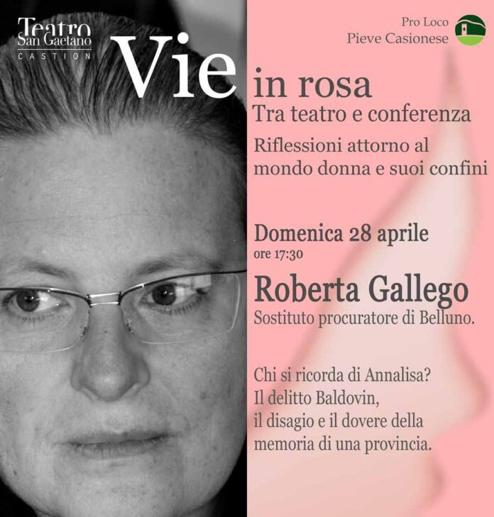 Si terrà domenica 28 aprile con inizio alle ore 17:30 al Teatro San Gaetano in via Pian delle Feste – Castion (Belluno), l’evento dal titolo “Chi si ricorda di Annalisa? Il delitto Baldovin, il disagio e il dovere della memoria di una provincia” con relatrice il sostituto procuratore della Repubblica Roberta Gallego.