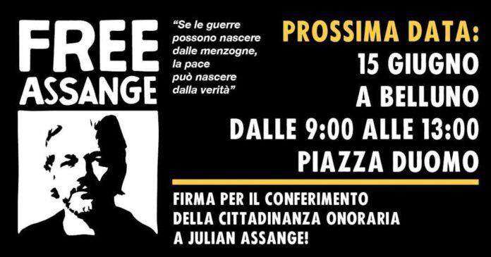 Sabato 15 giugno 2024 inizia la campagna “Belluno per Assange”, con la raccolta delle firme dei cittadini residenti nel Comune di Belluno per il conferimento della cittadinanza onoraria a Julian Assange. Il comitato ha 90 giorni di tempo per raccogliere 300 firme di cittadini residenti nel comune di Belluno.
