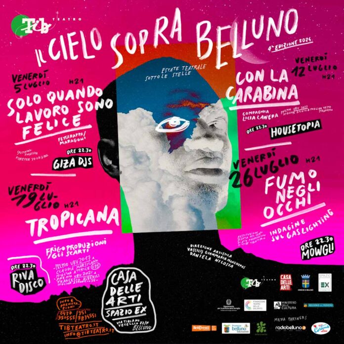 Belluno, 25 giugno 2024 – Si è tenuta questa mattina presso la Sala Consiliare del Comune di Belluno, alla presenza dell’assessore alla Cultura Raffaele Addamiano, la conferenza stampa di presentazione della quarta edizione de Il Cielo sopra Belluno, estate teatrale sotto le stelle – rassegna estiva di teatro contemporaneo con artisti vincitori di importanti premi nazionali (Premio Ubu, Inbox), per la co-direzione artistica di Daniela Nicosia e Vassilij Mangheras e l’organizzazione di Tib Teatro, in collaborazione con Fondazione Teatri delle Dolomiti e Comune di Belluno, MIC e Regione del Veneto – che si svolgerà da venerdì 5 luglio a venerdì 26 luglio, negli spazi esterni della Casa delle Arti – Spazio Ex.