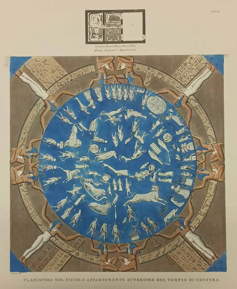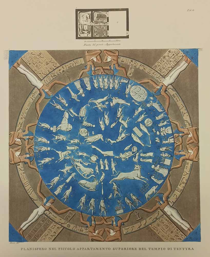 Molti anni dopo, nel 1823, Segato torna in Italia dopo una permanenza di cinque anni in Egitto. Porta con sé parte dell’enorme lavoro di documentazione tra cui uno dei suoi disegni più belli che riproduce uno zodiaco del tempio di Tentyra votato alla dea Hathor.