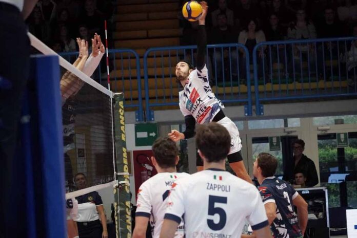 IN EQUILIBRIO – Al cambio di campo, però, San Donà sale di colpi a muro e in attacco. E doppia i bellunesi sull’8-4 e 10-5. Zappoli prova a suonare la carica (9-11), mentre Saibene fa sentire il fiato sul collo al Personal Time (15-16). E coach De Cecco ha buone risposte pure dalla panchina: nello specifico, da Loglisci. Il primo punto ufficiale in maglia biancoblù dello schiacciatore mantovano vale l’aggancio: 22-22. Ma il braccio armato di Giannotti non si “scarica” mai, mentre due errori (di Schiro in attacco e Loglisci dai 9 metri) costano cari: 23-25 e situazione in equilibrio.