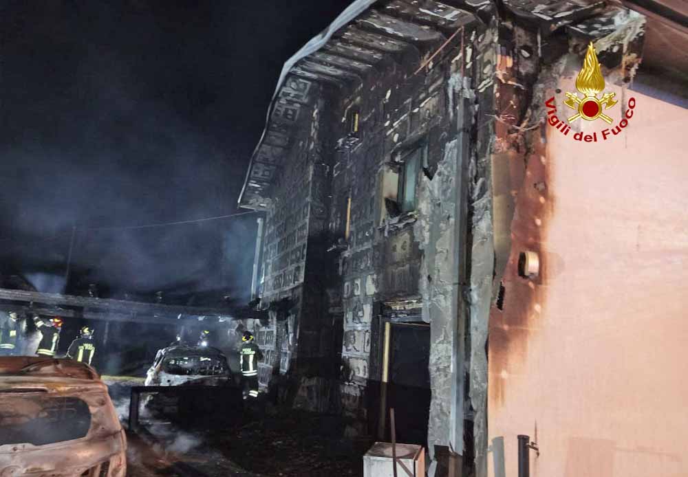 Bruciate due auto, una legnaia, il cappotto esterno dell’abitazione. Un infisso al piano terra è stato danneggiato dalle fiamme e il fumo è penetrato all’interno della casa, provocando ulteriori danni.