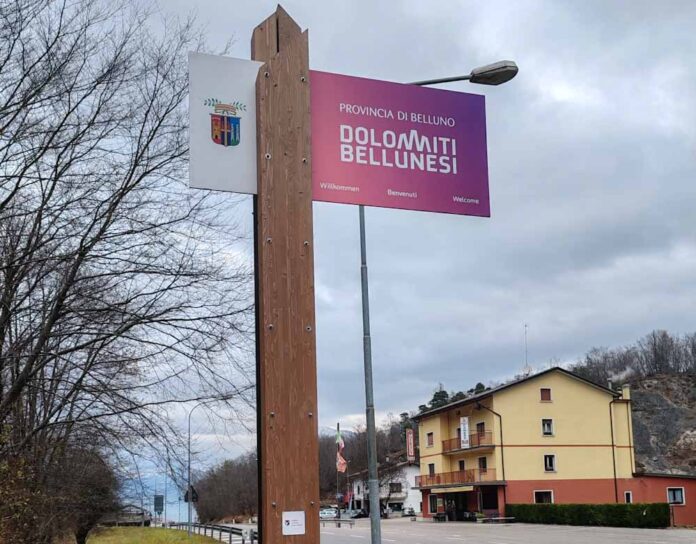 Il benvenuto ai turisti e a tutti quelli che entrano in provincia di Belluno ha il colore dell’enrosadira, quello che le Dolomiti acquisiscono all’alba e al tramonto. I nuovi cartelli stradali posti all’ingresso del territorio provinciale infatti sono rosa e portano la scritta “Dolomiti Bellunesi” sotto l’indicazione geografico-amministrativa della Provincia di Belluno, con i caratteri del nuovo brand.