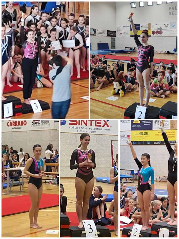 L’ oro é stato ricevuto anche da Aurora Dal Farra (junior 2011 esperto 1) che è anch’essa cresciuta di livello ed ha raggiunto la 1° posizione in trave, oltre ad aver ben svolto sia il corpo libero che il volteggio.
