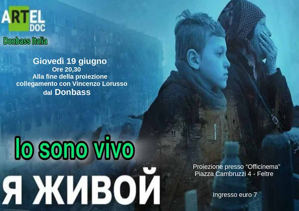Feltre – Un evento cinematografico e di approfondimento si terrà a Feltre giovedì 19 giugno alle ore 20:30 presso “Officinema”, situato in Piazza Cambruzzi 4. Verrà proiettato il documentario intitolato “Io sono vivo” (Я ЖИВОЙ), un’iniziativa promossa da Artel Doc e Donbass Italia.