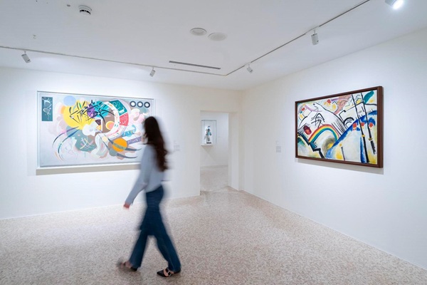 Il percorso espositivo si apre con opere chiave dell’astrazione e del Surrealismo esposte durante la breve ma intensa attività di Guggenheim Jeune, che riflettono le principali tendenze artistiche alla base del programma della galleria. Le sale successive sono dedicate alle singole esposizioni organizzate in questo spazio, tra cui quelle consacrate a Kandinsky, all’artista russa Marie Vassilieff, creatrice del genere delle “bambole artistiche” e figura di riferimento per una pratica transdisciplinare, e alla mostra di scultura contemporanea, che rappresentò un evento di primo piano nella storia culturale londinese del periodo prebellico, dimostrando il ruolo determinante di Guggenheim nella promozione e nell’accettazione dell’arte moderna e astratta in Gran Bretagna. Si prosegue con i ritratti di Cedric Morris, artista gallese al centro della scena dell’avanguardia britannica, mentre una sala sarà dedicata alle esposizioni del pittore statunitense Charles Howard, dello scultore tedesco Heinz Henghes, e alla mostra dello Studio 17, laboratorio di incisione fondato da Stanley William Hayter. Segue un omaggio alla storica esposizione Abstract and Concrete Art, con opere di artisti quali Mondrian, Taeuber-Arp e Van Doesburg. Non mancherà una sala dedicata ai ritratti fotografici a colori di Gisèle Freund, presentati originariamente a Guggenheim Jeune in forma di proiezione: una modalità espositiva che l’artista predilesse per tutta la vita per mostrare le sue trasparenze a colori dedicate ad artisti e intellettuali. Le sale finali riuniscono infine opere di quegli artisti inclusi nella mostra sul collage e nelle diverse esposizioni dedicate al Surrealismo, tra cui Kernn-Larsen, André Masson, Reuben Mednikoff, Wolfgang Paalen, Grace Pailthorpe, Man Ray, Tanguy e John Tunnard.