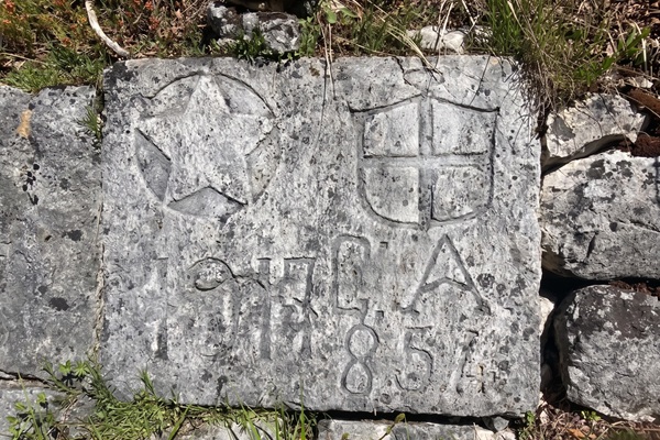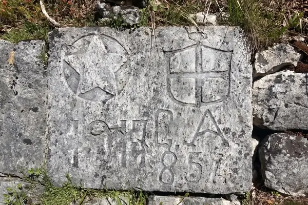 L’incisione, ancora oggi ben leggibile nonostante l’usura del tempo, presenta una simbologia che è un vero e proprio documento d’identità militare. Ai lati superiori dominano i simboli del potere dell’epoca: a sinistra la Stella a cinque punte, lo “Stellone” del Regio Esercito; a destra lo Scudo Crociato di Casa Savoia.